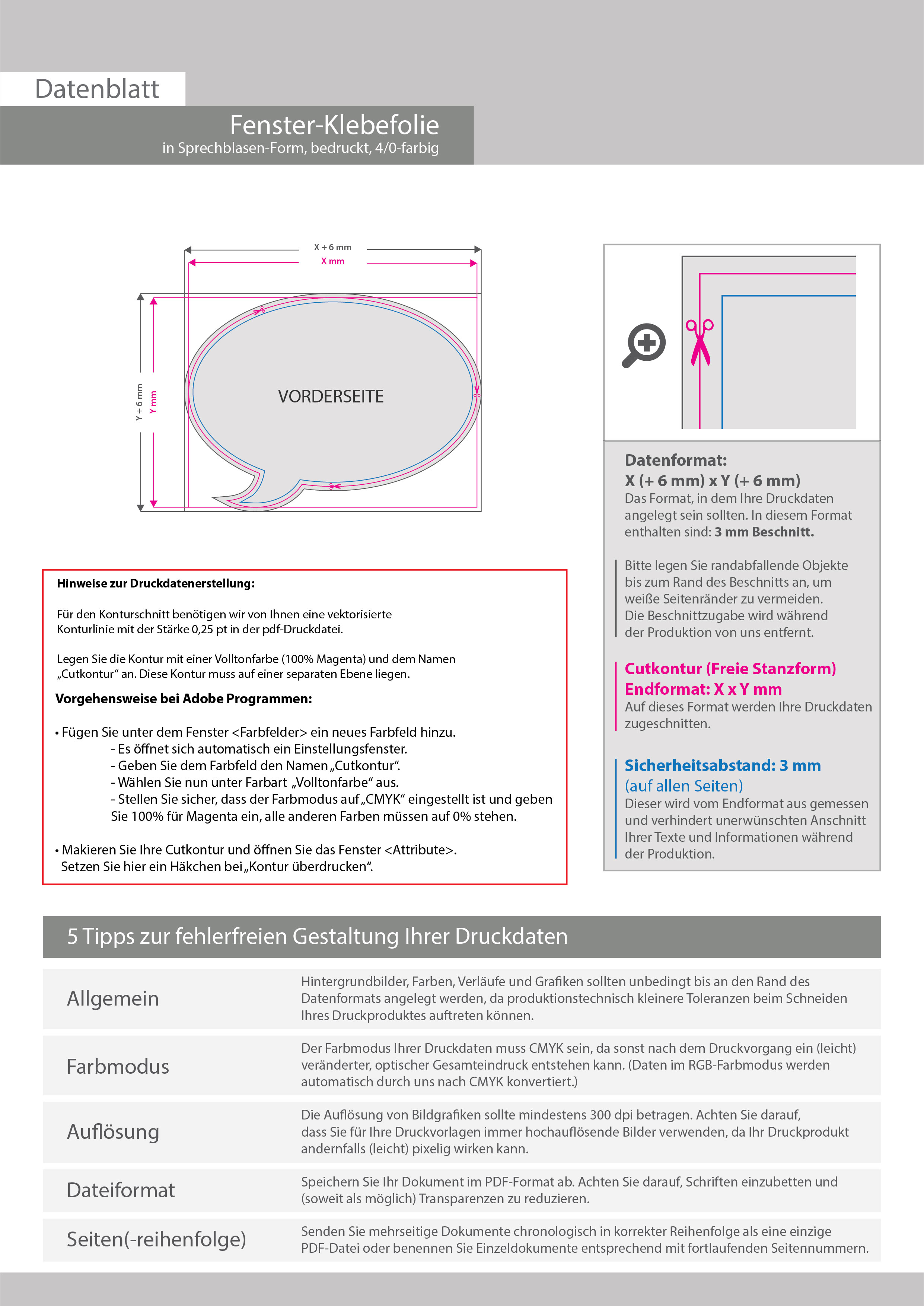 Fenster-Klebefolie 4/0 farbig bedruckt in Sprechblase-Form konturgeschnitten