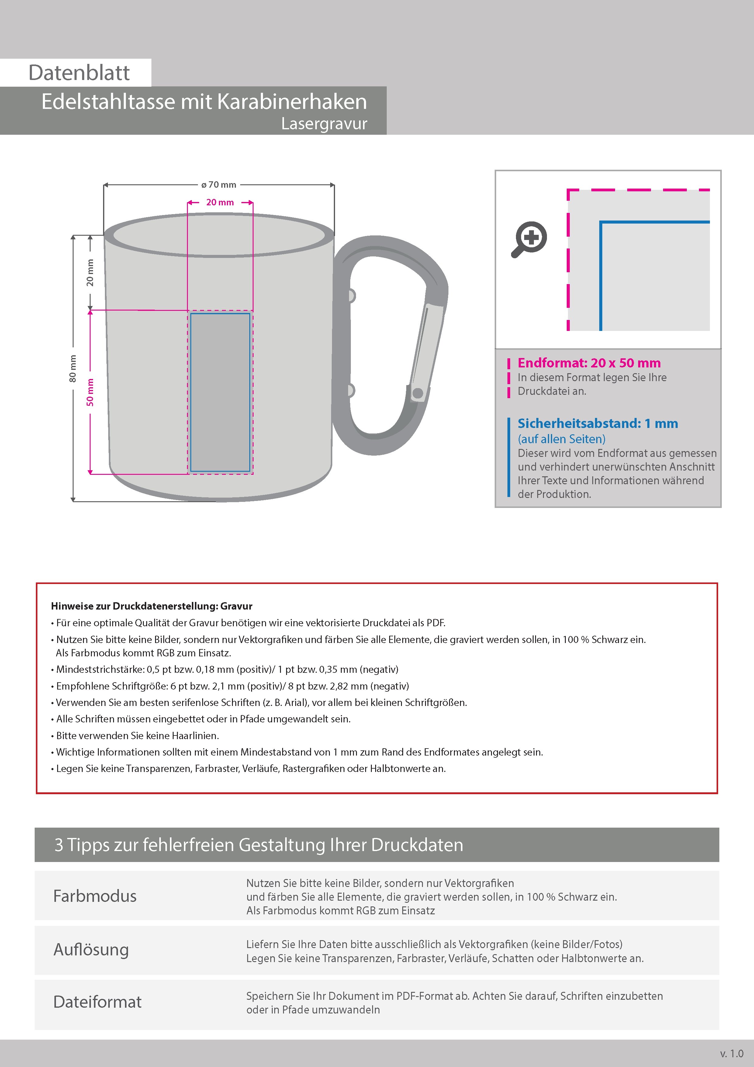 Edelstahltasse Klassik mit Karabinerhaken 220 ml mit einseitiger Lasergravur